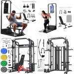 - Two-in-one home gym: Combines functional cable machine with Smith Bar.